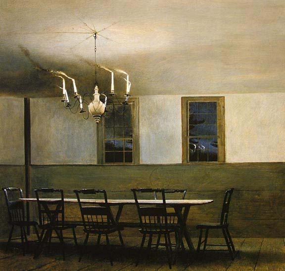 For those who don't know, the Wyeth family represents a legacy of great artwork. Beginning with the masterful storybook illustrations of Howard Pyle - his mentoring of and bequeathment of craft down to N. C. Wyeth - and on to his son, our present hero, and finally on to his son, James Wyeth.